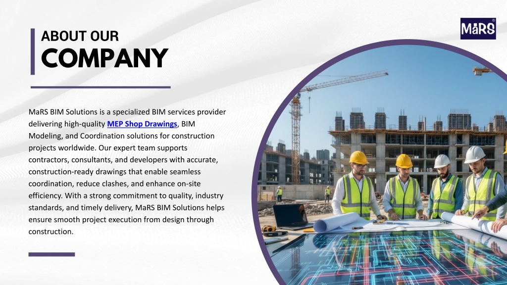 ABOUT OUR COMPANY MaRS BIM Solutions is a specialized BIM services provider delivering high-quality MEP Shop Drawings, BIM Modeling, and Coordination solutions for construction projects worldwide. Our expert team supports contractors, consultants, and developers with accurate, construction-ready drawings that enable seamless coordination, reduce clashes, and enhance on-site efficiency. With a strong commitment to quality, industry standards, and timely delivery, MaRS BIM Solutions helps ensure smooth project execution from design through construction.
