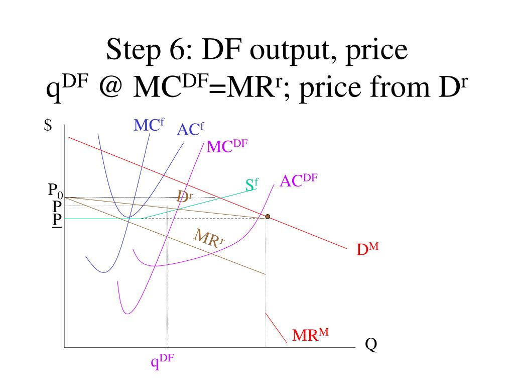 Step 6: DF output, priceqDF @ MCDF=MRr; price from Dr $ MCf ACf MCDF ACDF Sf P0 Dr P P MRr DM MRM Q qDF