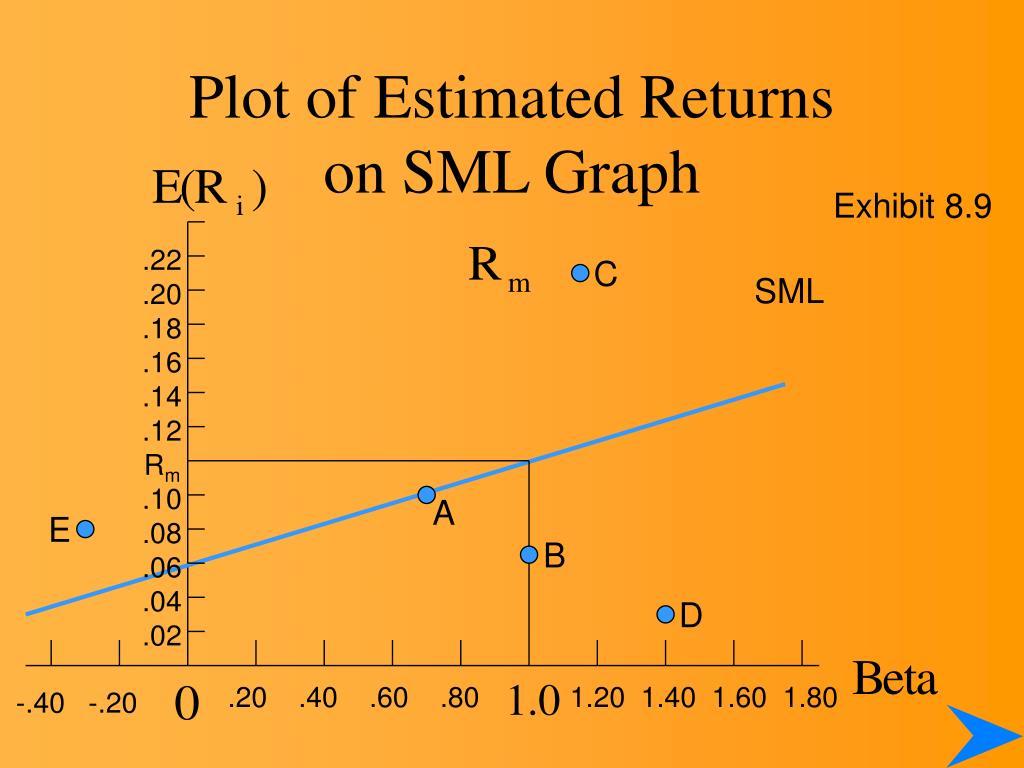 Plot of Estimated Returnson SML Graph Exhibit 8.9 .22 .20 .18 .16 .14 .12 Rm .10 .08 .06 .04 .02 C SML A E B D -.40 -.20 .20 .40 .60 .80 1.20 1.40 1.60 1.80