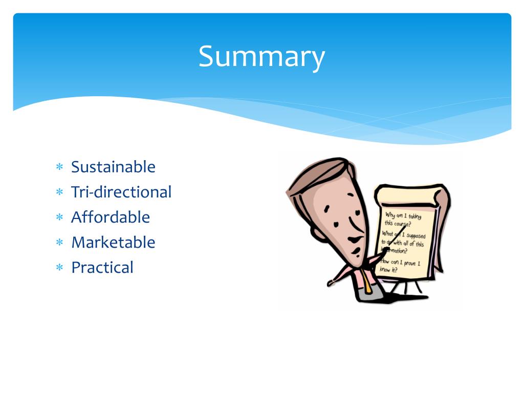 Summary Sustainable Tri-directional Affordable Marketable Practical