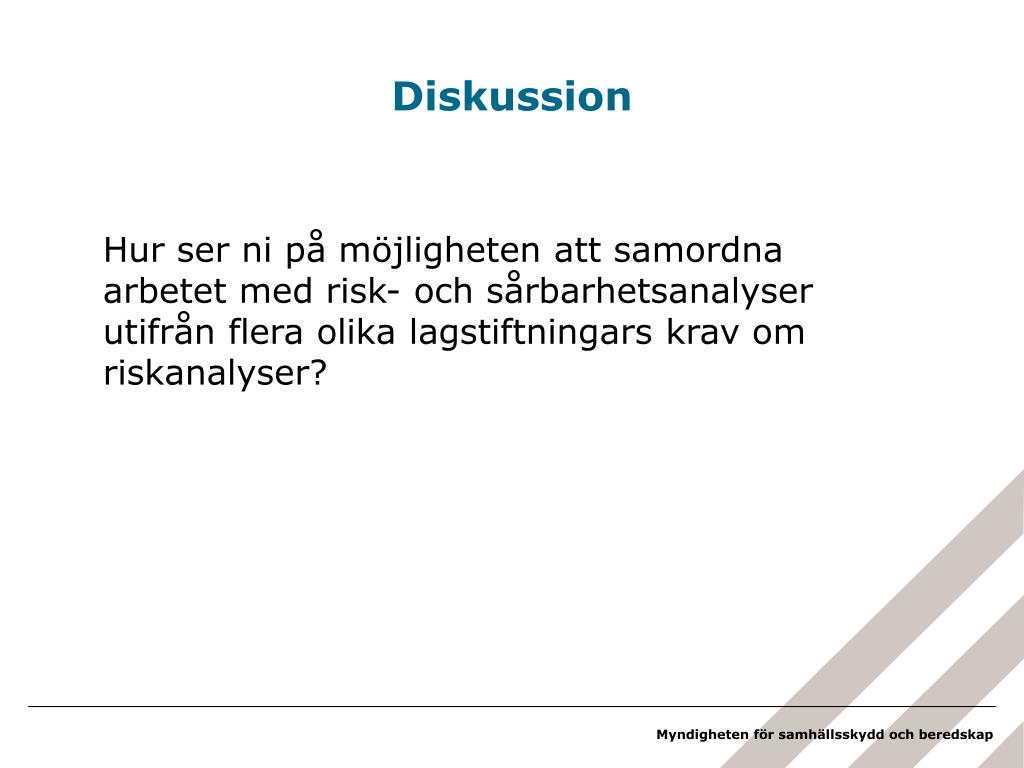 Diskussion Hur ser ni på möjligheten att samordna arbetet med risk- och sårbarhetsanalyser utifrån flera olika lagstiftningars krav om riskanalyser?