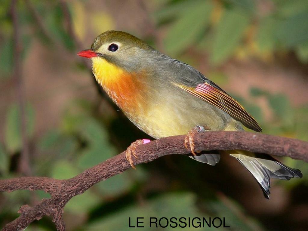 LES OISEAUX ET LEURS CHANTS. LE GEAI DES CHENES. LE ROUGE GORGE. LES HIRONDELLES. LE MERLE NOIR MALE. LA MERLESSE. LA MESANGE BLEUE. LE CHARDONNERET. LE MOINEAU. LE PIC VERT. LE PINSON. LE ROSSIGNOL. Ce diaporama qui nous a été communiqué est anonyme.