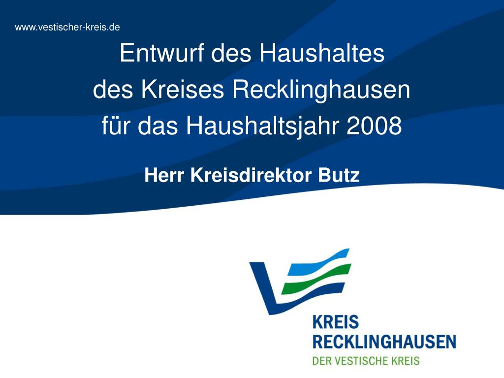 www.vestischer-kreis.de Entwurf des Haushaltes des Kreises Recklinghausen für das Haushaltsjahr 2008 Herr Kreisdirektor Butz