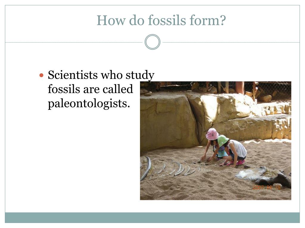 How do fossils form? • Scientists who study fossils are called paleontologists.