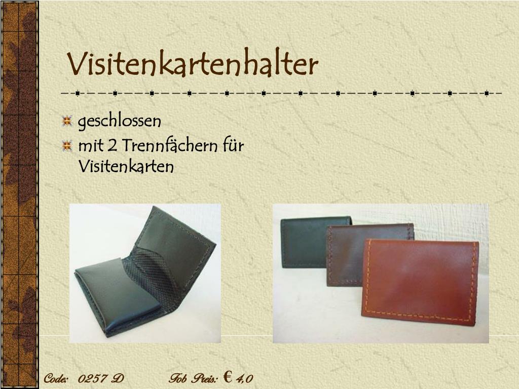 Visitenkartenhalter • geschlossen • mit 2 Trennfächern für Visitenkarten Code: 0257 D Fob Preis: €4,0