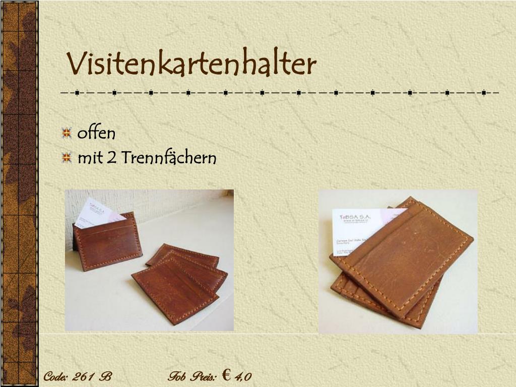 Visitenkartenhalter • offen • mit 2 Trennfächern Code: 261 B Fob Preis: €4,0