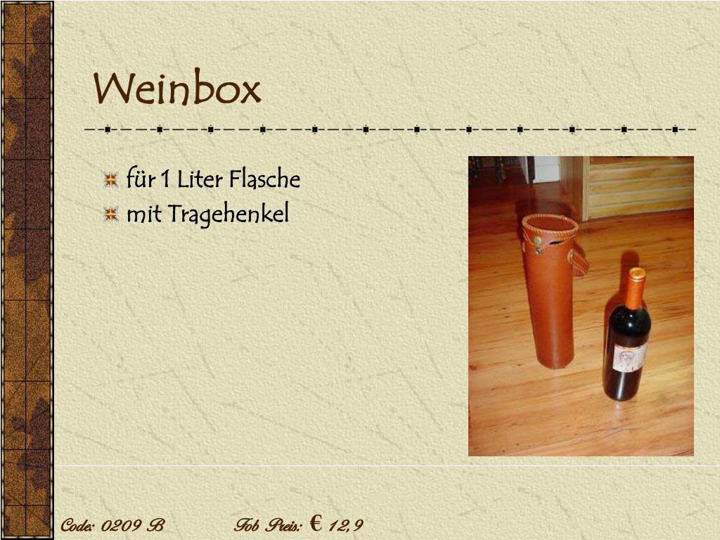 Weinbox • für 1 Liter Flasche • mit Tragehenkel Code: 0209 B Fob Preis: €12,9