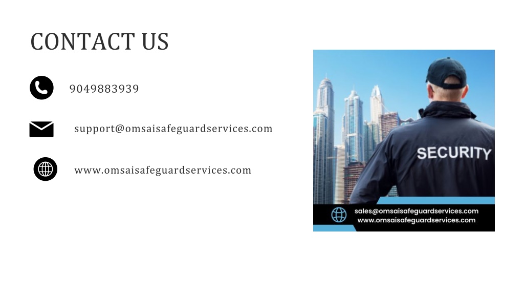 CONTACT US 9049883939 support@omsaisafeguardservices.com www.omsaisafeguardservices.com