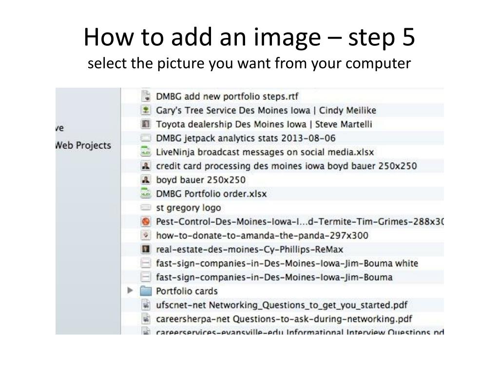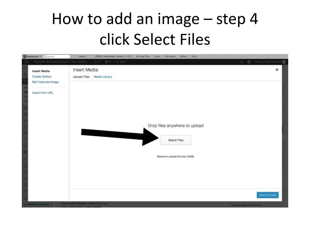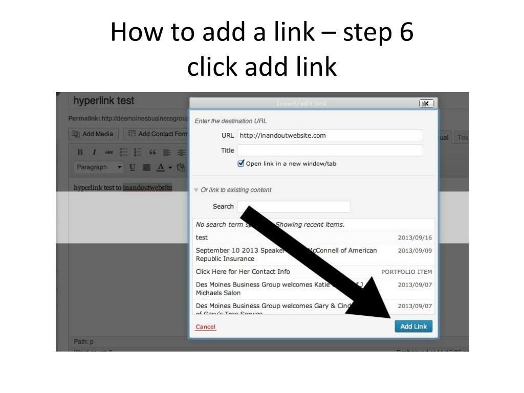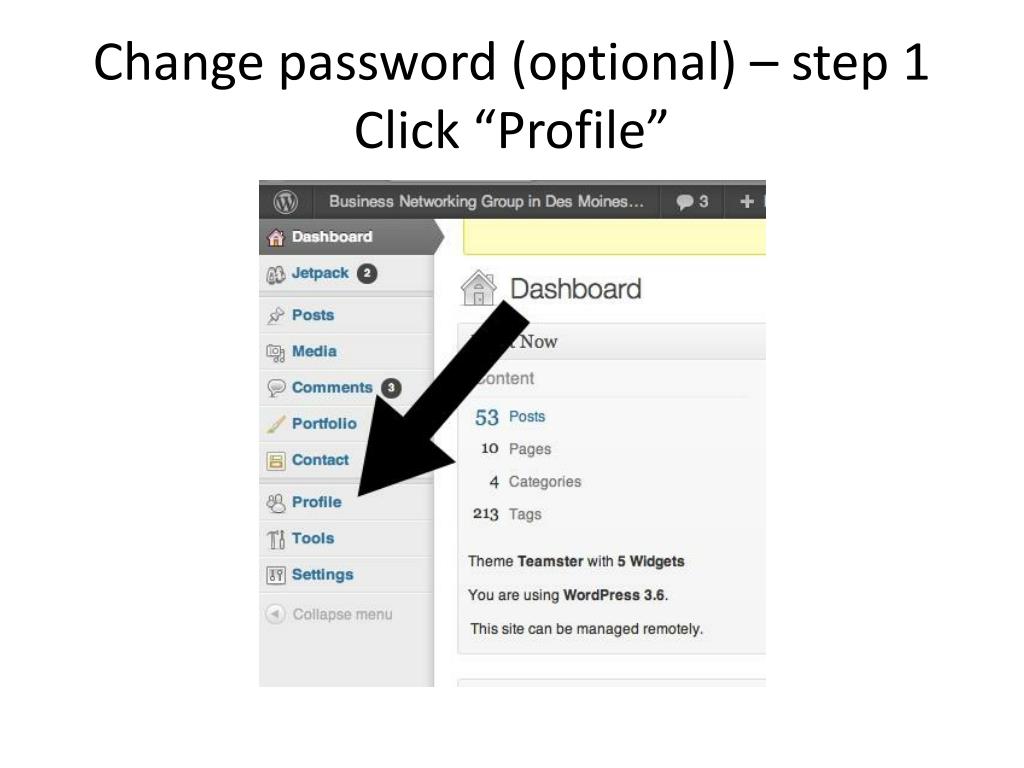 And www.DesMoinesBusinessGroup.com Present How you can use this Wordpress content management marvel to drive traffic to your business. Open internet browser, not a search bar. type www.desmoinesbusinessgroup.com/login.php into an internet browser. Username: Password :.