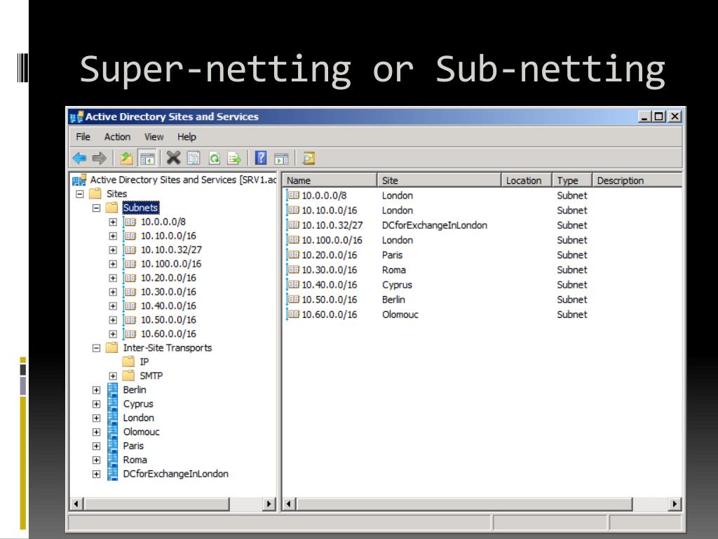 Site Example – Empty Site DC4 DC3 Paris10.20.x.x DC1 London10.10.x.x DC5 DC1 DC2 DC3 Client DC2 Berlin10.50.x.x DC4 DC5 Roma10.30.x.x DC6 Cyprus10.40.x.x DC7