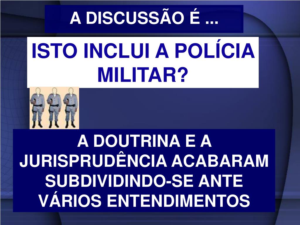 A DISCUSSÃO É ... ISTO INCLUI A POLÍCIA MILITAR? A DOUTRINA E A JURISPRUDÊNCIA ACABARAM SUBDIVIDINDO-SE ANTE VÁRIOS ENTENDIMENTOS