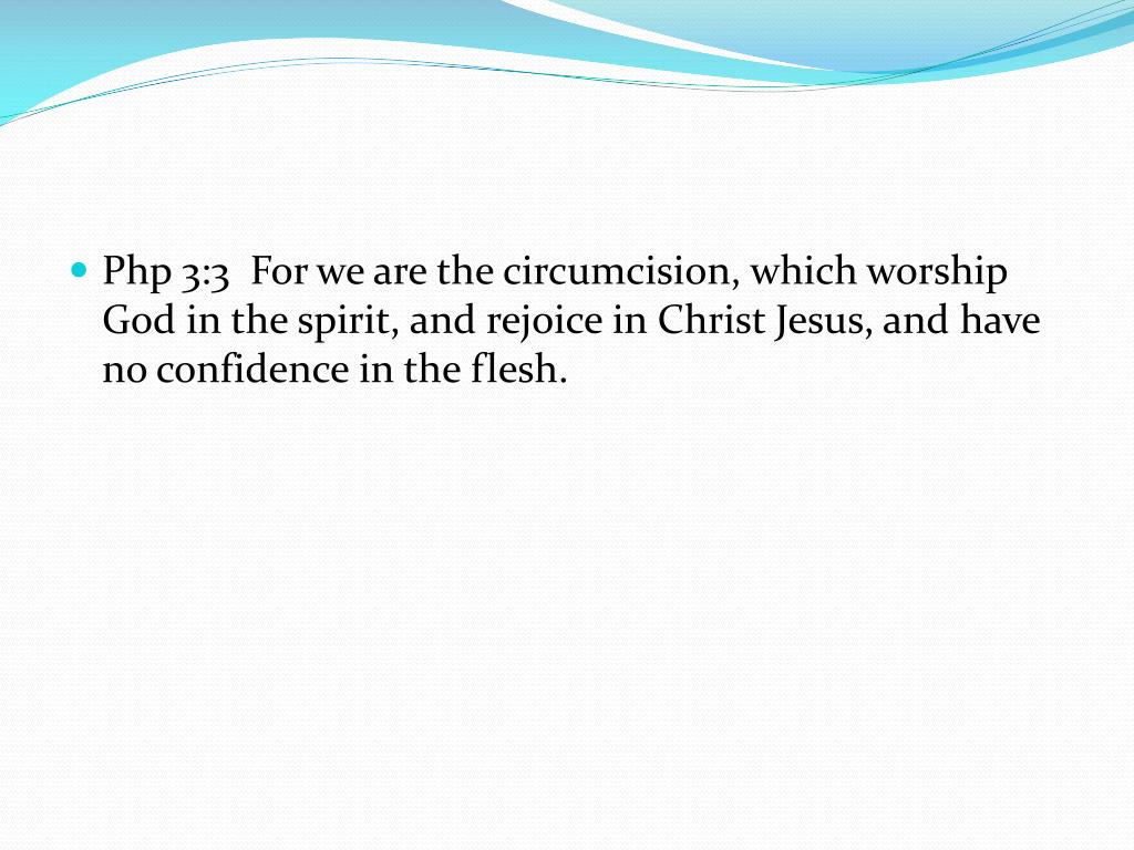 Php 3:3 For we are the circumcision, which worship God in the spirit, and rejoice in Christ Jesus, and have no confidence in the flesh.