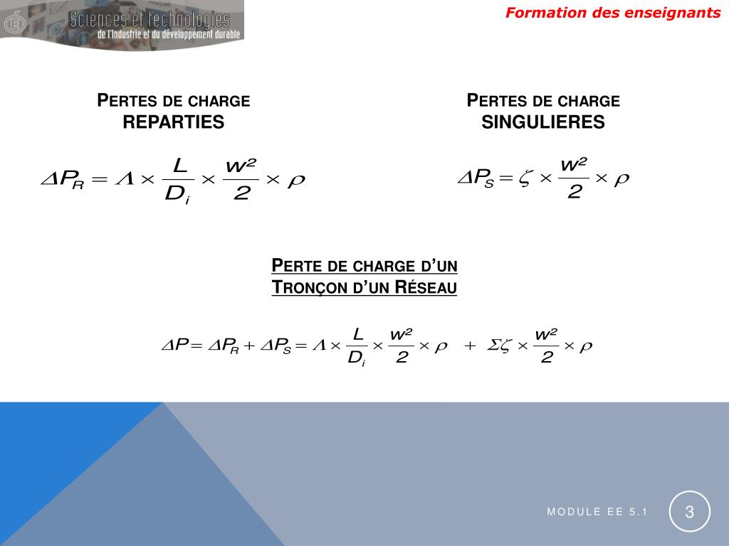 Pertes de charge SINGULIERES Pertes de charge REPARTIES Perte de charge d’un Tronçon d’un Réseau Module EE 5.1