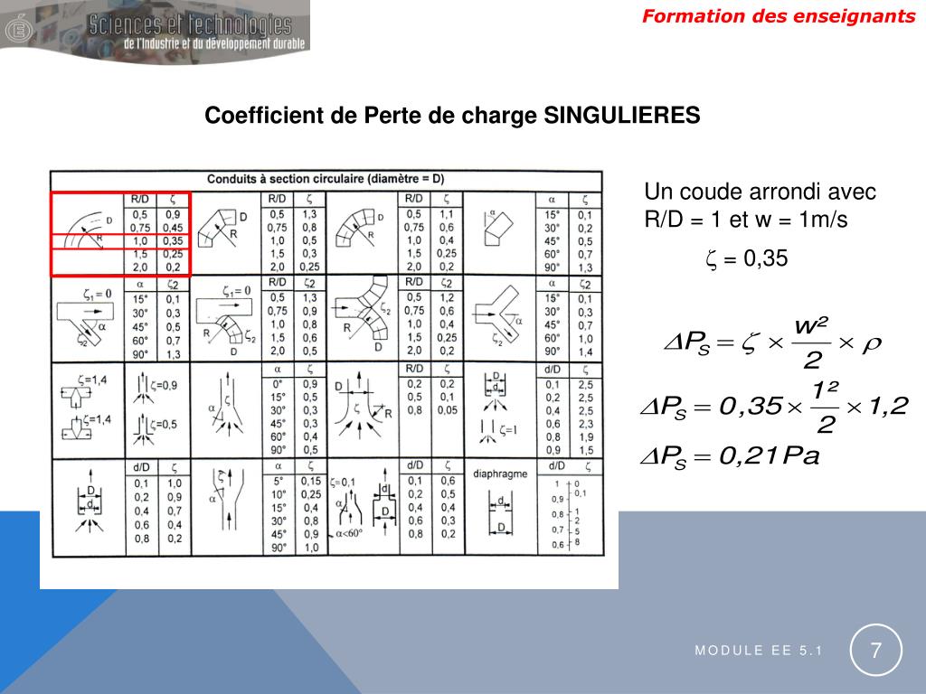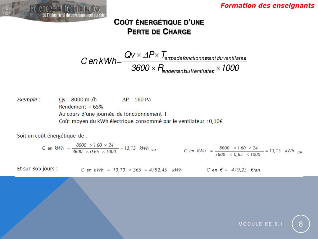 Coût énergétique d’une Perte de Charge Module EE 5.1