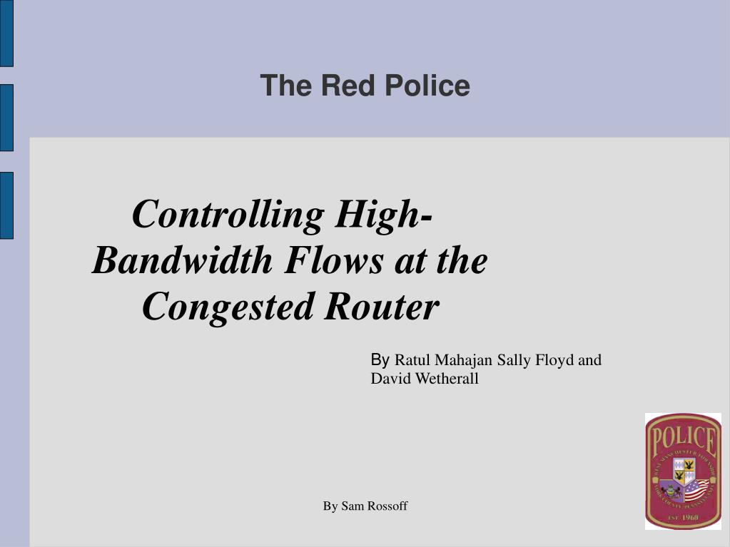 Controlling High-Bandwidth Flows at the Congested Router The Red Police By Ratul MahajanSally Floyd andDavid Wetherall By Sam Rossoff