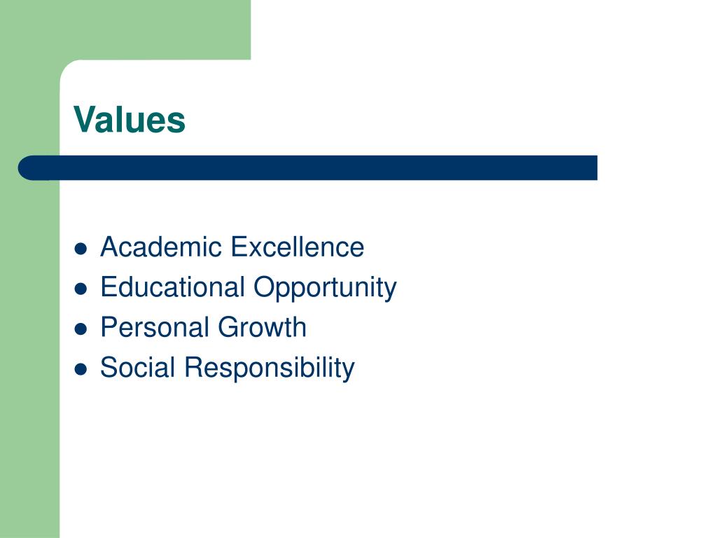 Values • Academic Excellence • Educational Opportunity • Personal Growth • Social Responsibility