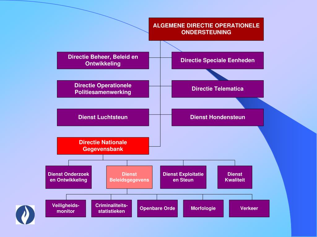 FEDERALE POLITIE. ALGEMENE DIRECTIE VAN DE OPERATIONELE ONDERSTEUNING DIRECTIE VAN DE NATIONALE GEGEVENSBANK BELEIDSGEGEVENS VERKEER. PCS. DIENST BELEIDSGEGEVENS. FPF/DGS/DSB/Beleidsgegevens. Organigram. DOEL DSB/B Verkeer. Aanlevering van Snelle