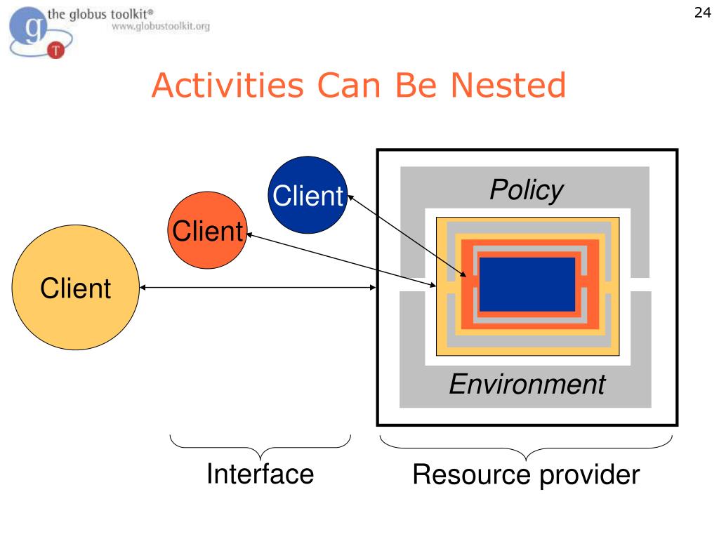 Activities Can Be Nested Client Policy Client Client Environment Resource provider Interface
