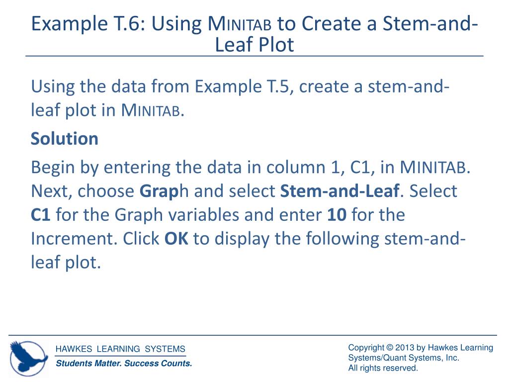 Example T.6: Using Minitab to Create a Stem-and-Leaf Plot (cont.)