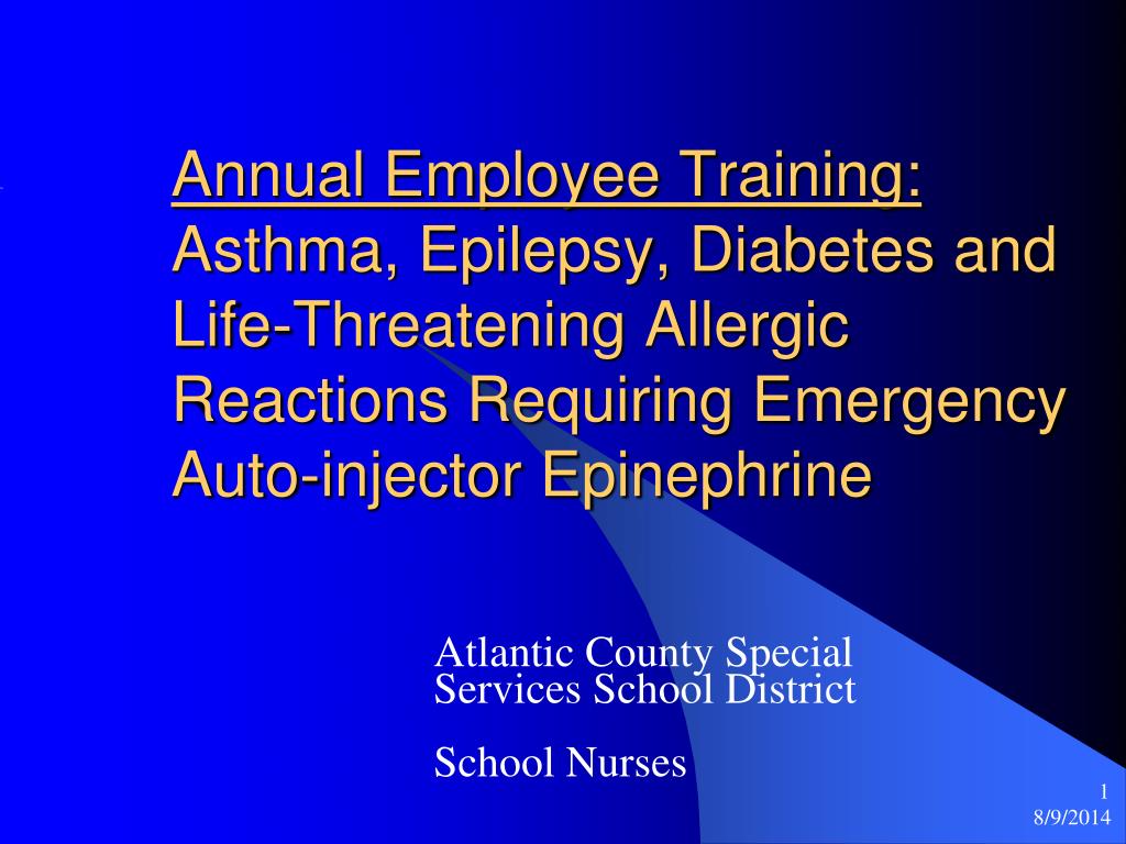 Annual Employee Training:Asthma, Epilepsy, Diabetes and Life-Threatening Allergic Reactions Requiring Emergency Auto-injector Epinephrine Atlantic County Special Services School District School Nurses