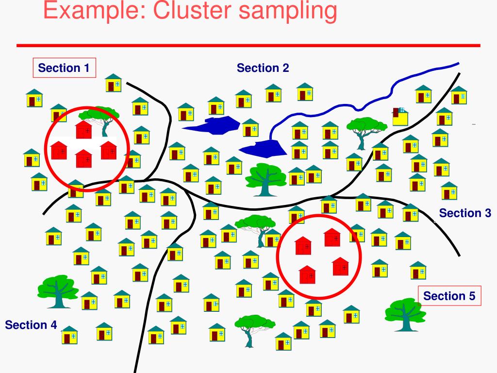 Example: Cluster sampling Section 1 Section 2 Section 3 Section 5 Section 4