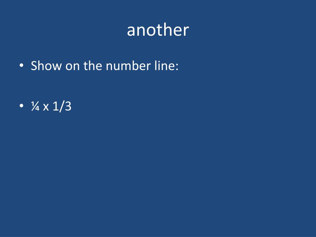 another • Show on the number line: • ¼ x 1/3