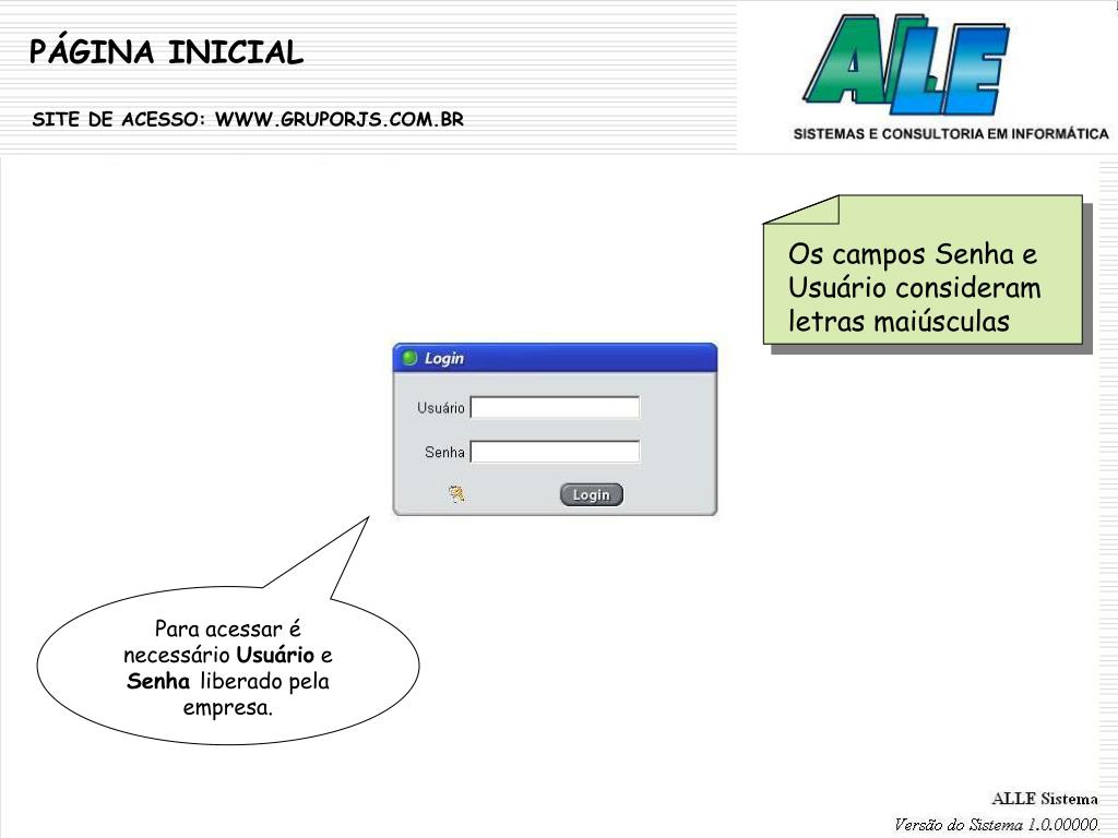 PÁGINA INICIAL SITE DE ACESSO: WWW.GRUPORJS.COM.BR Os campos Senha e Usuário consideram letras maiúsculas Para acessar é necessário Usuário e Senha liberado pela empresa.