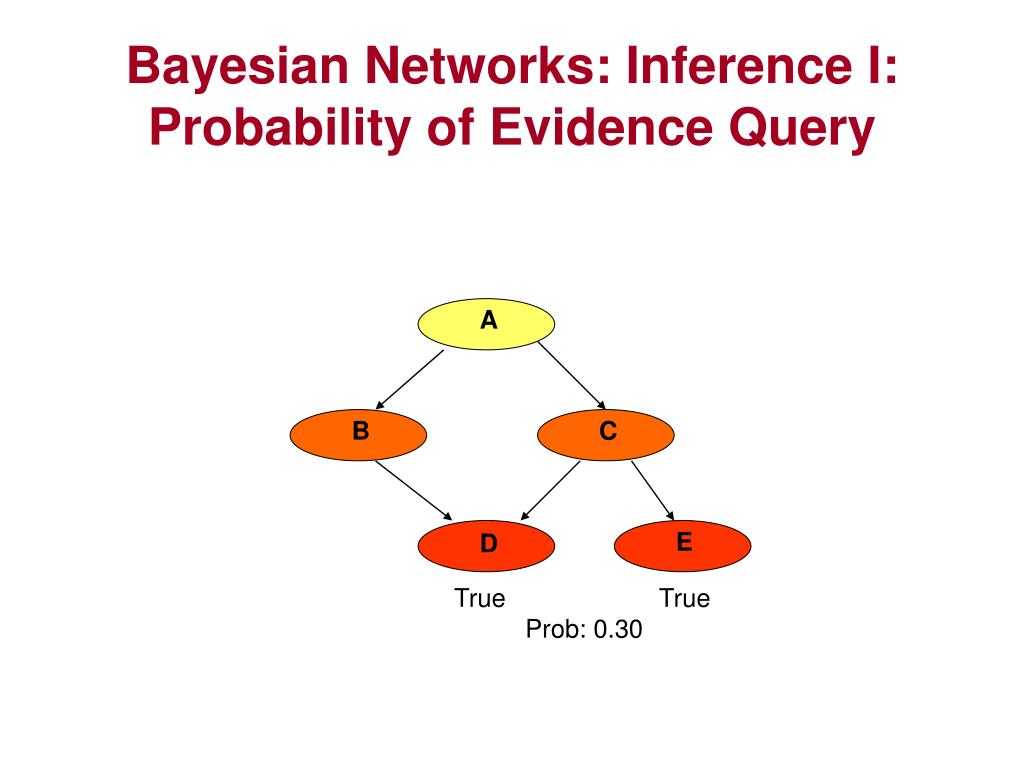 Bayesian Networks: Inference I: Probability of Evidence Query A B C E D True True Prob: 0.30
