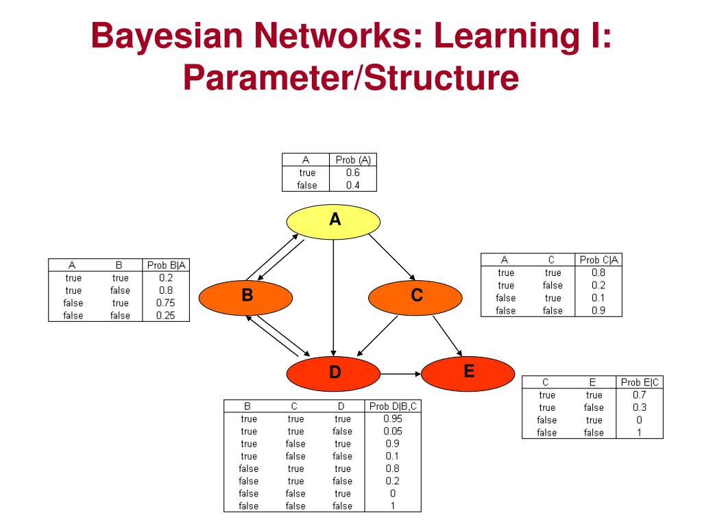 Bayesian Networks: Learning I: Parameter/Structure A B C E D