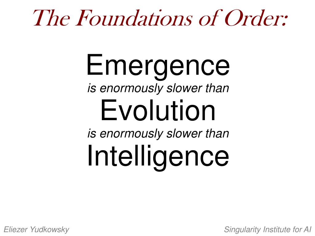 The Foundations of Order: Emergence is enormously slower than Evolution is enormously slower than Intelligence Eliezer Yudkowsky Singularity Institute for AI