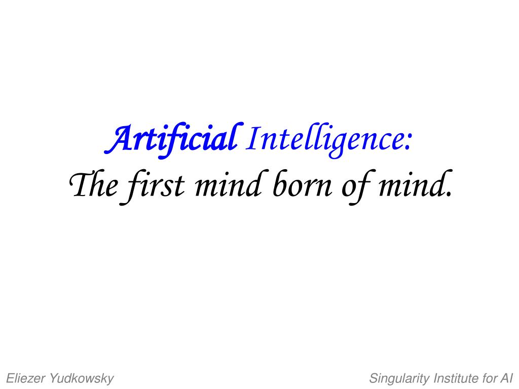 Artificial Intelligence:The first mind born of mind. Eliezer Yudkowsky Singularity Institute for AI