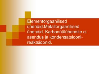 Elementorgaanilised ühendid.Metallorgaanilised ühendid. Karbonüülühendite α -asendus ja kondensatsiooni-reaktsioonid. Metallorgaanilisd ühendid.