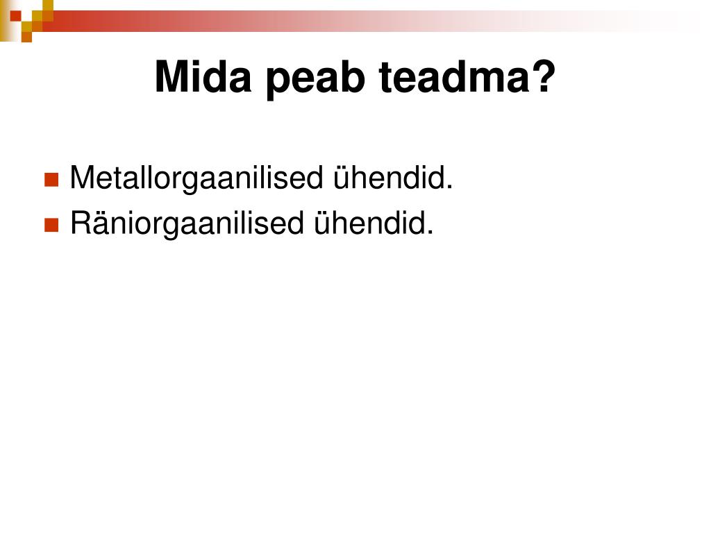 Mida peab teadma? • Metallorgaanilised ühendid. • Räniorgaanilised ühendid.