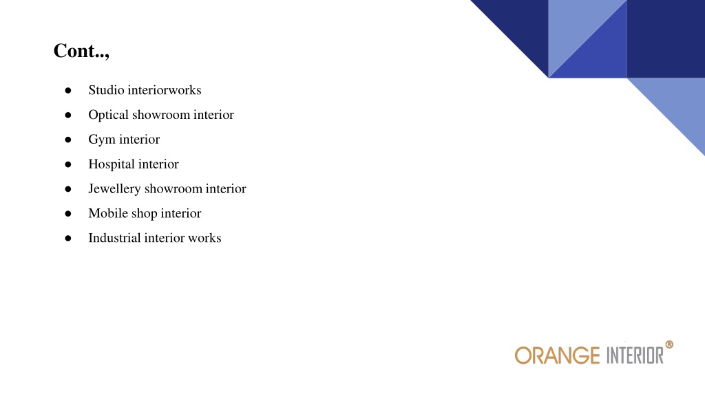 Overview We the Orange interiors are one of the best and the reputed interior services in Chennai,Tamilnadu. We provide the best interior service to our clients by offering them the best craftsmanship, premium quality, reasonable pricing and endless design options with our expert interior designers in Chennai. We have well experienced and professional team who has deep and flexible knowledge in interior designing services. We provide the most innovative Home interior, Office interior and Commercial interior as best as we could. We are in the business for more than 10 years as the best interior designers in Chennai. https://www.orangeinterior.in/chennai