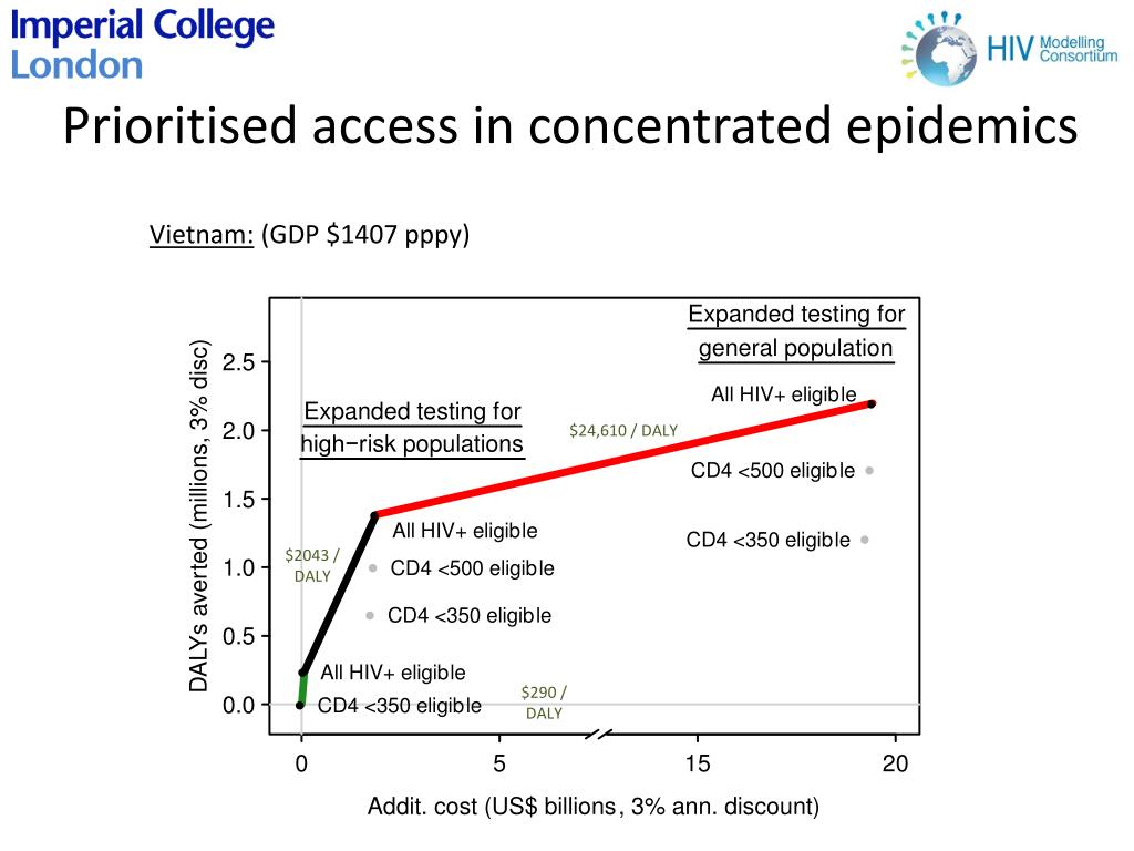 Prioritised access in concentrated epidemics Vietnam: (GDP $1407 pppy) $24,610 / DALY $2043 / DALY $290 / DALY