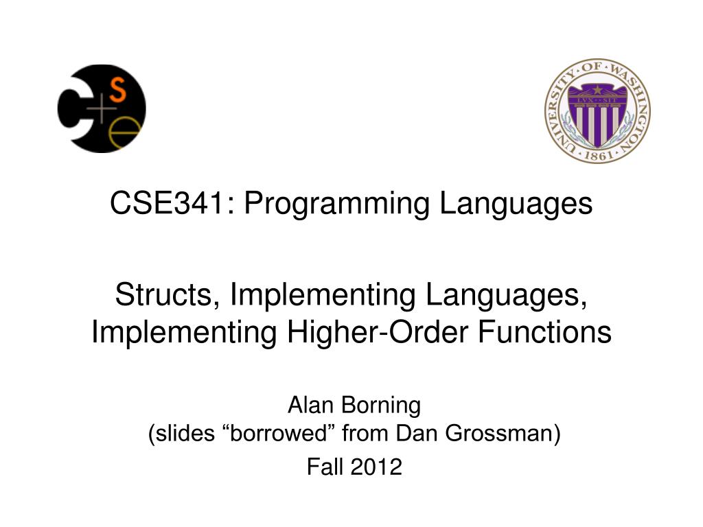 CSE341: Programming LanguagesStructs, Implementing Languages, Implementing Higher-Order Functions Alan Borning (slides “borrowed” from Dan Grossman) Fall 2012