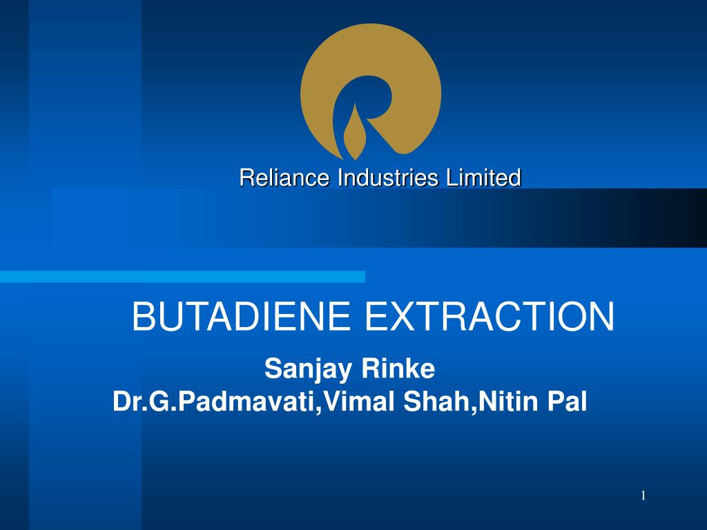 Reliance Industries Limited BUTADIENE EXTRACTION Sanjay Rinke Dr.G.Padmavati,Vimal Shah,Nitin Pal