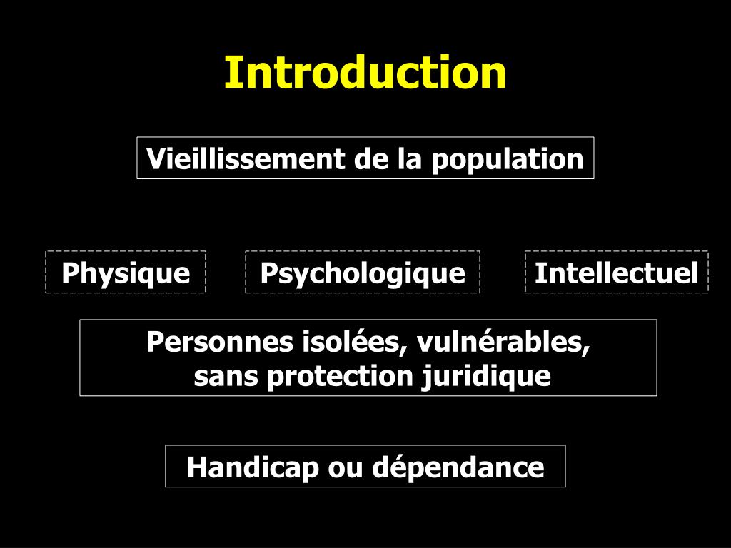 Refus de soins Introduction Vieillissement de la population Physique Psychologique Intellectuel Personnes isolées, vulnérables, sans protection juridique Handicap ou dépendance