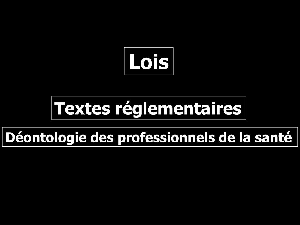 Lois Textes réglementaires Déontologie des professionnels de la santé