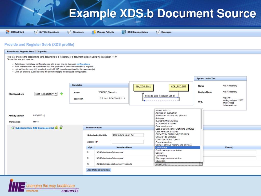 Existing Simulators • XD* Suite of simulator • IHE and epSOS • Order Management • Radiology, Laboratory, Cardiology, Eyecare • Patient Management • Sharing Value Set • Security (TLS) • …
