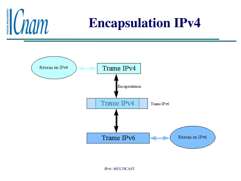 IPv6 – Multicasting • Qu’est–ce que le Multicast ? • «one – to – many » ou « many – to – many » • Historique • IPv4 – 1985 – RFC966 • Multicast – 1991 – Steve Deering – thèse • « AUDIOCAST » – 1992 – réunion IETF