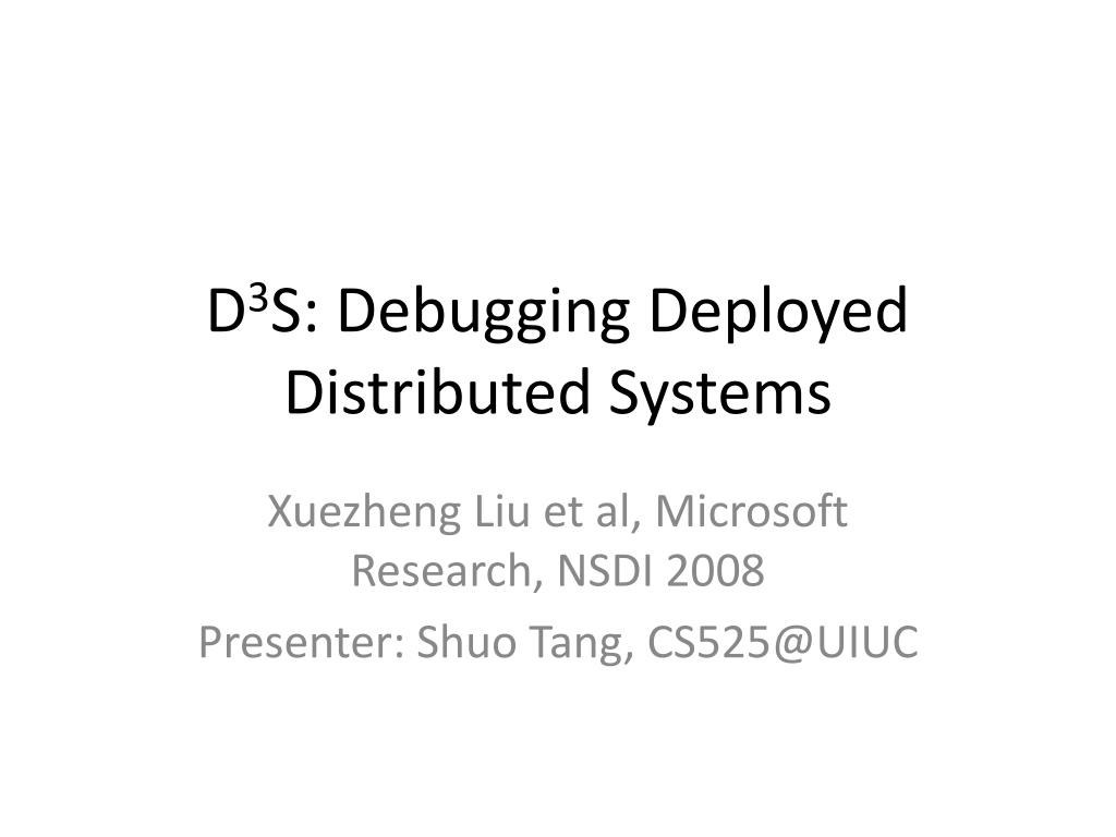 D3S: Debugging Deployed Distributed Systems XuezhengLiu et al, Microsoft Research, NSDI 2008 Presenter: Shuo Tang, CS525@UIUC