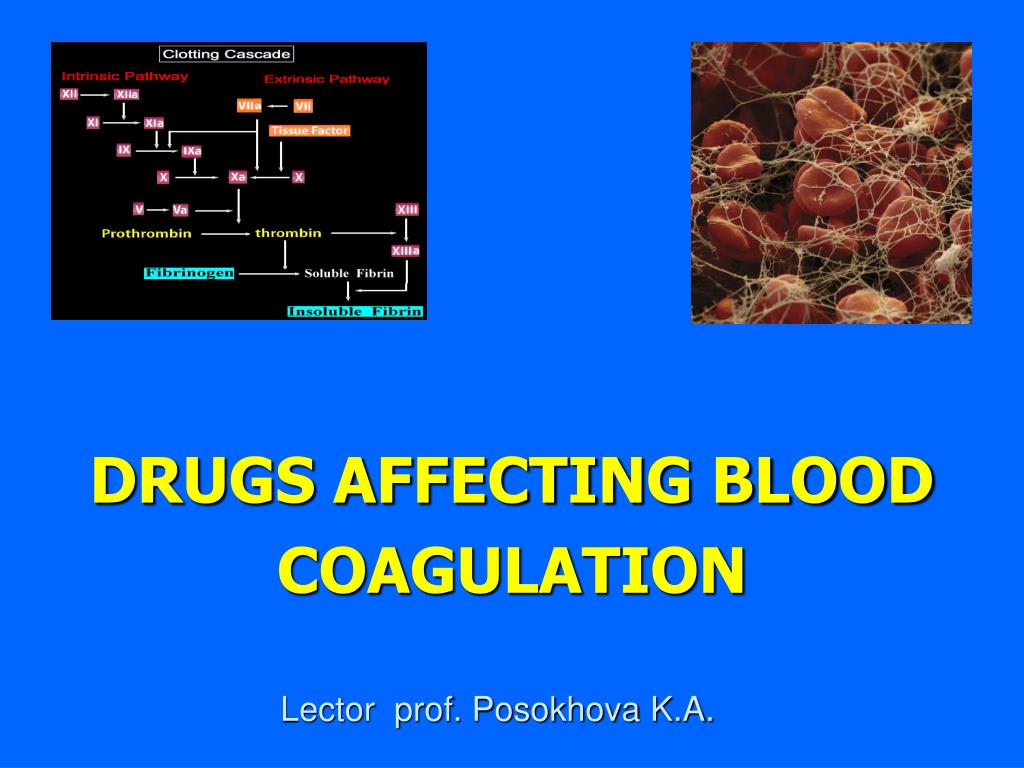 DRUGS AFFECTING BLOOD COAGULATION Lector prof. Posokhova K.A.