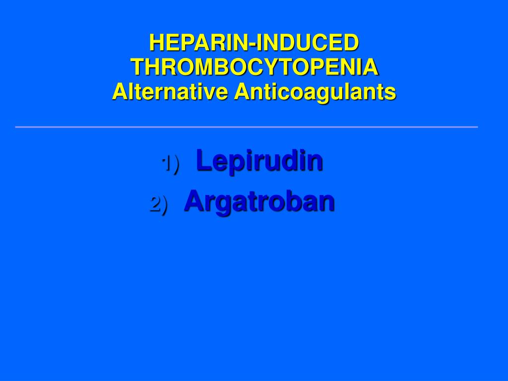 HEPARIN-INDUCED THROMBOCYTOPENIA Alternative Anticoagulants • Lepirudin • Argatroban