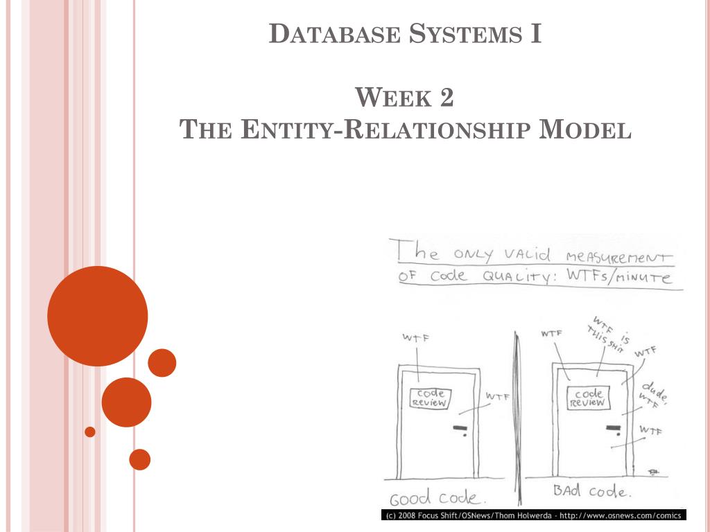 Database Systems I Week 2 The Entity-Relationship Model. Syllabus. Class Time and Location : Tue 14:30-16:20 AQ3005 Thu 14:30-15:20 AQ3003 Course Website: http ://www.cs.sfu.ca/CC/354/rfrank / Instructor : Richard Frank, PhD Email: rfrank@sfu.ca Office Hours Location: TASC 9205