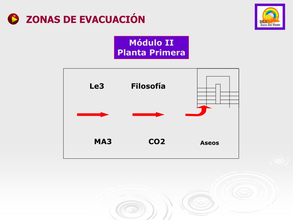 ZONAS DE EVACUACIÓN Módulo II Planta Primera Le3 Filosofía MA3 CO2 Aseos