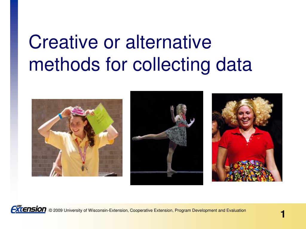 Creative or alternative methods for collecting data. Surveys, end-of-session questionnaires, interviews and focus groups have become popular ways to collect data. What other ways can you collect data that may be more novel, more appropriate and yield better information?