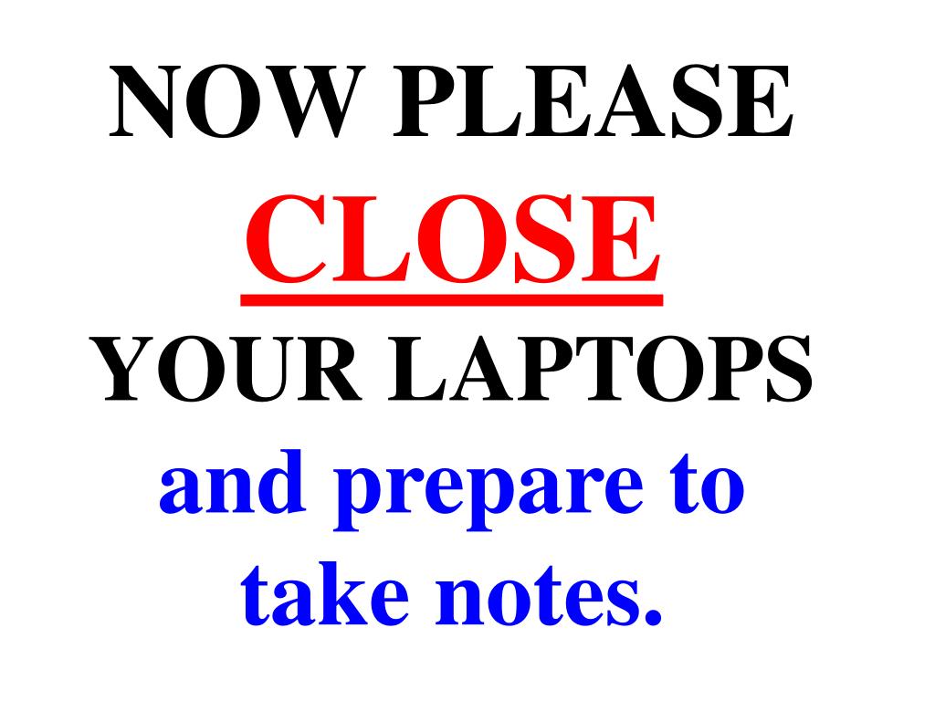 NOW PLEASE CLOSE YOUR LAPTOPS and prepare to take notes.