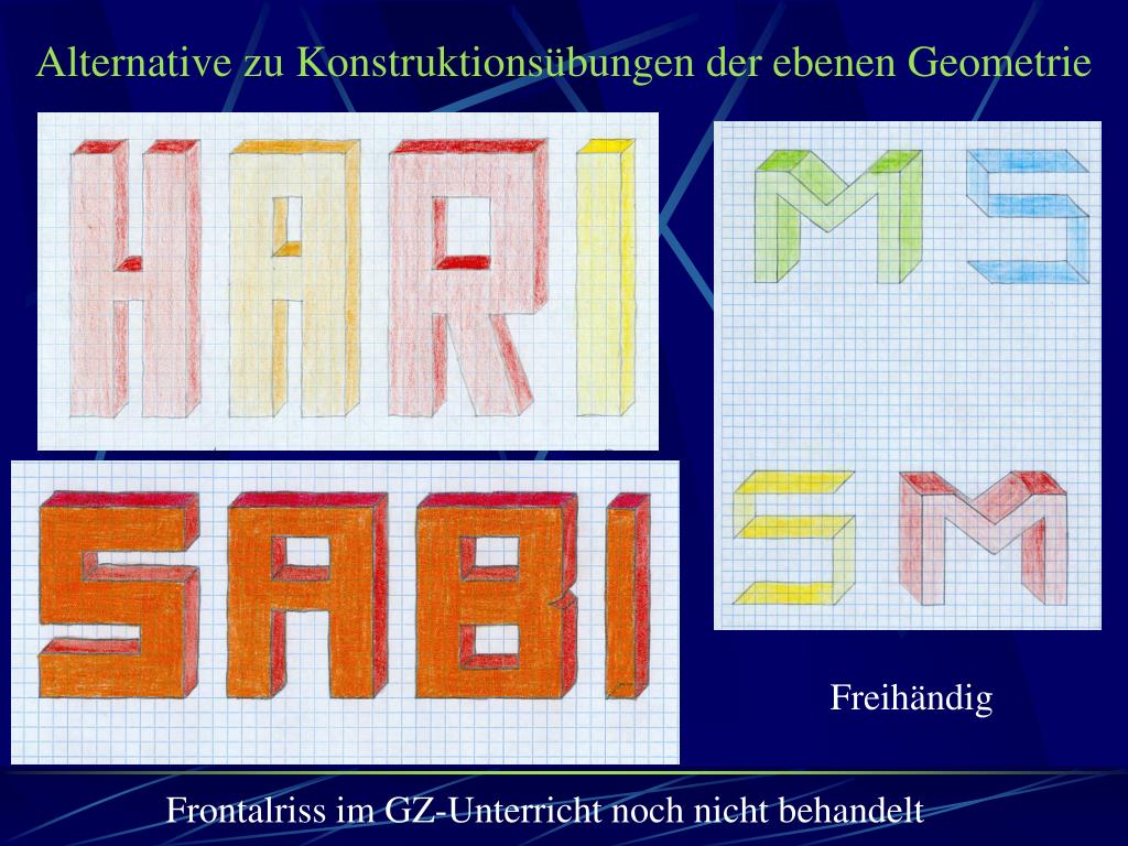 Alternative zu Konstruktionsübungen der ebenen Geometrie Freihändig Frontalriss im GZ-Unterricht noch nicht behandelt
