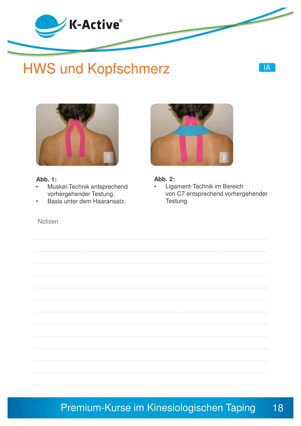 HWS und Kopfschmerz 1 2 • Abb. 2: • Ligament-Technik im Bereich von C7 entsprechend vorhergehenderTestung. • Abb. 1: • Muskel-Technik entsprechendvorhergehender Testung. • Basis unter dem Haaransatz. 18